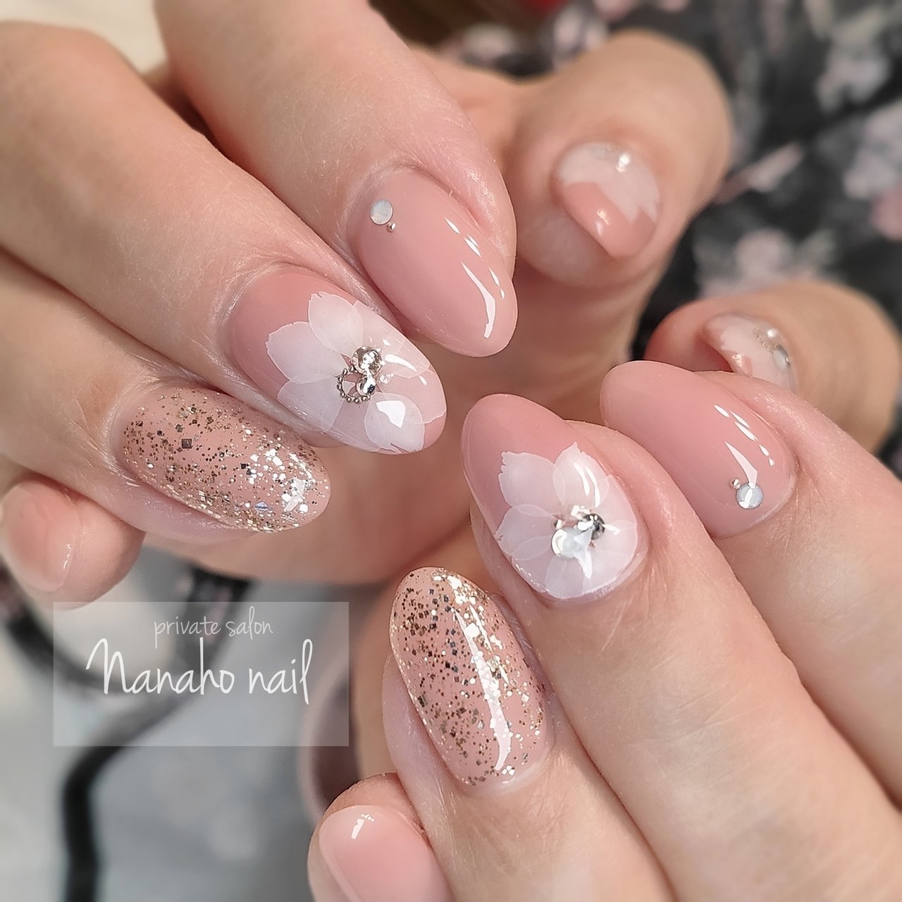 春 夏 ハンド シンプル ラメ Nanaho Nail 大阪府八尾市 のネイルデザイン No ネイルブック