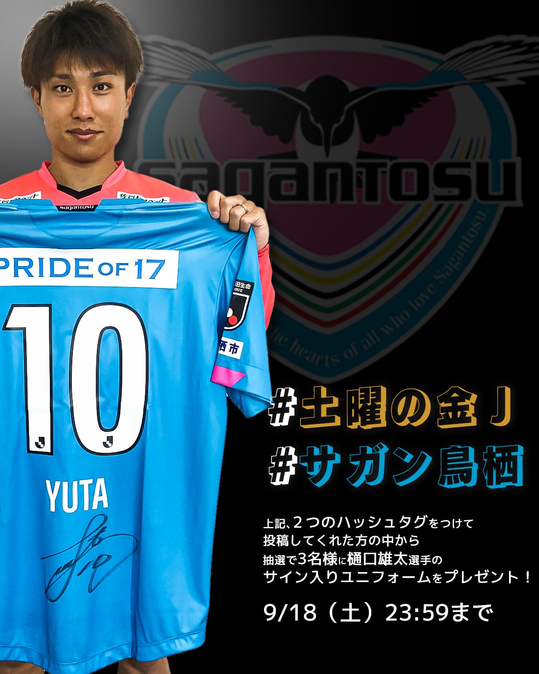 jリーグ 日本プロサッカーリーグ 金j ではなくなったけど スペシャルプレゼントキャンペーン 抽選で3名様に サガン鳥栖 樋口雄太 選手の サイン入りユニフォームをプレゼントします 1 J League をフォロー 2 土曜の金j